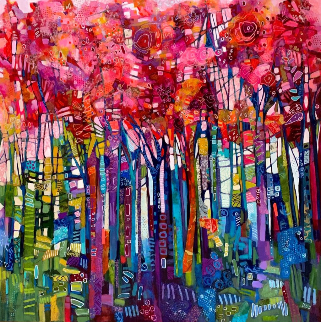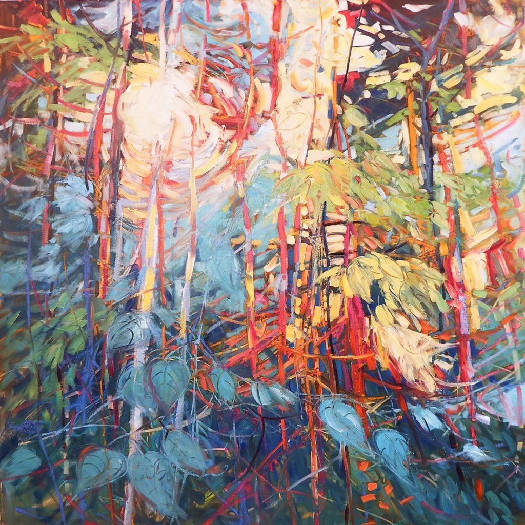 Judge’s comments: “This dazzling work is so full of excitement and energy as the viewer gets caught up in the fast sweeping energetic brushstrokes. The composition of this work is so intriguing as your eye begs to rest on the intriguing calm forest floor. Perfect palette, perfect harmony and perfect composition.”