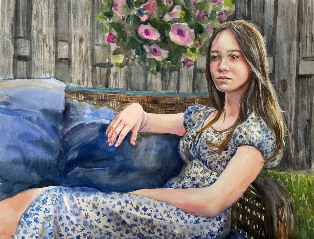 Judge’s comments: “This sweet young child captures your heart with her inky black and magnetic eyes. Why is this piece titled Beguiling? Is she? Magnificent detail in the neck of the collar and the strand of hair is wonderful as it gently dangles on the child’s face. “